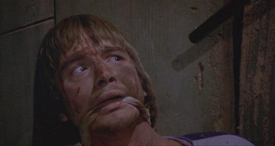 Best I can figure, Dawes stops feeling pain the moment his 5’o-clock shadow breaks through the threshold of his skin (a feature Norris would obviously go on to employ to full extent a couple years later), because by this point in the film he had already been beaten, shot in the solar plexus and beaten a second time, yet he still manages to muster enough machismo to fight Deputy Boles in the middle of a fenced-in horse corral. Stallion included (not to worry though, J.D. frightens it off with a cold-stare, as to not involve the poor creature in his fury).