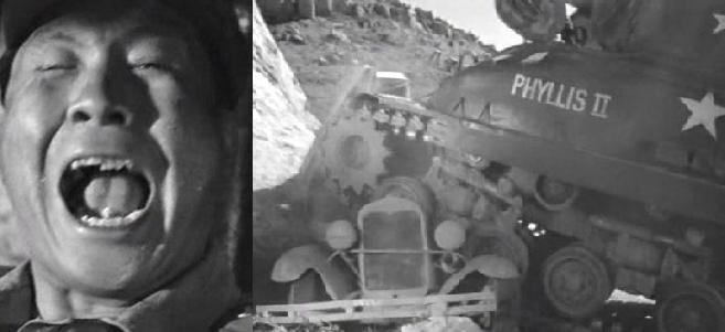 He almost makes it, too, but for the quick reaction of our heroes’ tank driver, who runs over the poor bastard. His final, painful scream, as the tank treads crush him and his truck like a tube of toothpaste, is as awesome as it is gruesome.