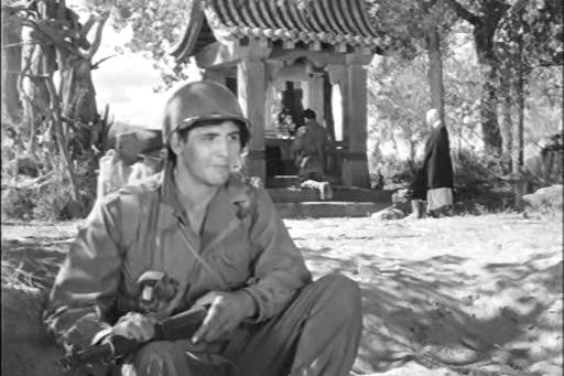 There for the sake of showing that the Korean War wasn’t just about America’s involvement, we have Richard Wyler (credited here as Richard Stapley) as the leader of a small tank unit. A frustrated man, he spends most of the film bitching about Americans (sincere, as opposed to his subordinates who view their colonial cousins as objects of amusement) but is able to redeem himself by the end of the picture when he mows down nearly the entire enemy force singlehandedly.