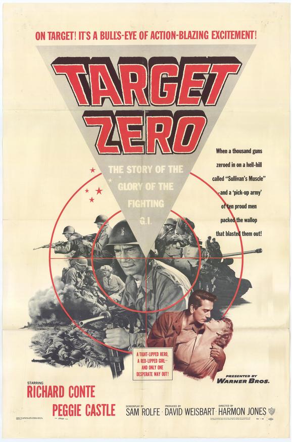 In the 1950s, War Films began moving away from their typical propaganda value and instead began focusing more on the Action aspect of battle. Target Zero is one of the early films of this type, which would later become known as the “Men-On-A-Mission” sub-genre. While the movie retains the typical cliches of the era (small ethnically and nationally diverse group, inner-group conflict, noble sacrifices), its focus on the tension of pre-battle sequences, planning for encounters, and ultimately the fight itself somewhat separates it from the rest of the genre. In fact, I think it features some of the best battle sequences of the era outside of Back To Bataan.