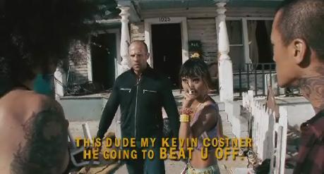 Okay, so it’s the brother of the character from the last film.  Still, he steals most of the gay for the movie.  Again.  Not that the constant barrage of shirtless thugs and the scenes featuring Jason Statham rubbing skin on skin with the lead singer for Linkin Park aren’t gay, but this guy takes the cake.